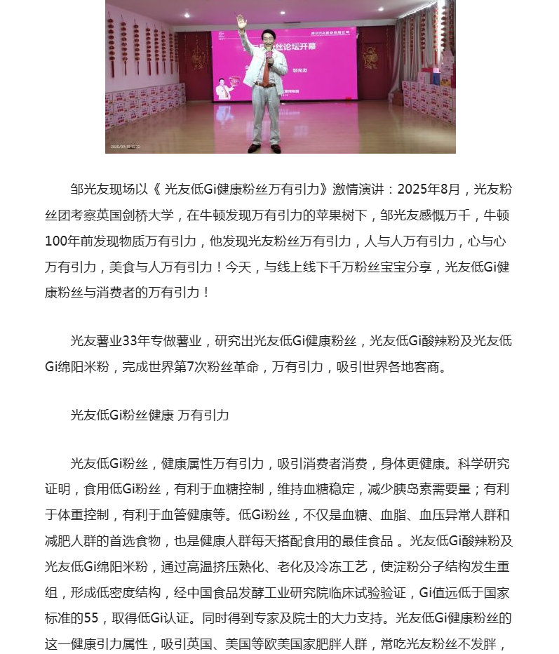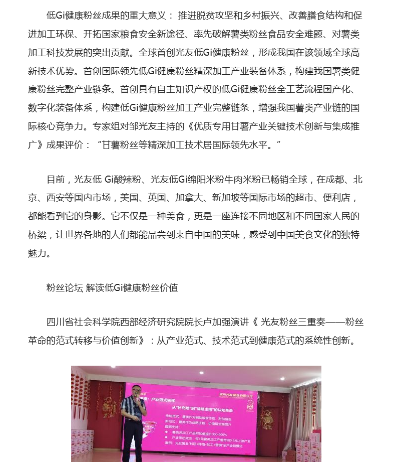 轉(zhuǎn)載鳳凰網(wǎng)-第七次世界粉絲革命——光友全球首創(chuàng)低Gi健康粉絲
